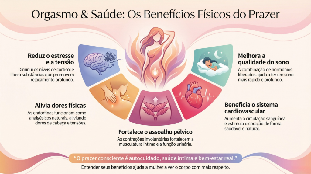 Esses benefícios mostram que o prazer não é excesso, luxo ou motivo para culpa. Ele é um estímulo fisiológico legítimo, que ativa equilíbrio, relaxamento e vitalidade no corpo.