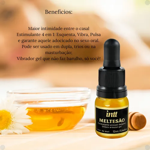 O Meltesão é a escolha perfeita para quem busca diversão e sensações intensas sem abrir mão da segurança. Ao contrário de alimentos comuns que podem prejudicar a saúde íntima, este gel foi formulado especificamente para o prazer: ele vibra, pulsa e esquenta, tudo com um delicioso e realista sabor de mel. Sua fórmula inovadora utiliza o poder do Jambu (espilantol) para criar ondas de formigamento e eletricidade que elevam a sensibilidade ao máximo, transformando o beijo e o sexo oral em um verdadeiro banquete sensorial.